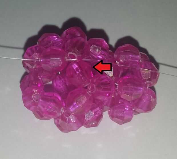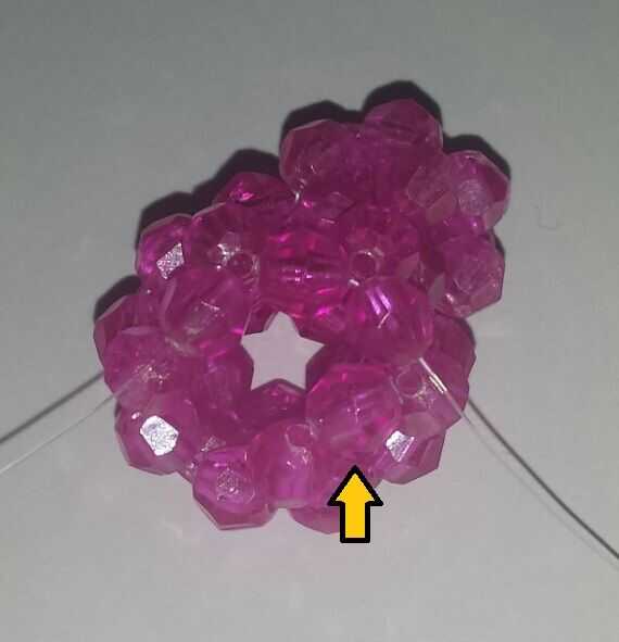 1. poner 2 rosa granos (rondas) en el extremo izquierdo (pintado)