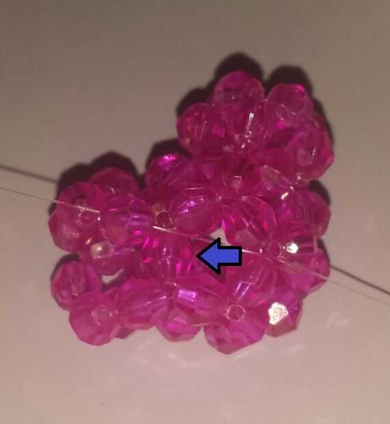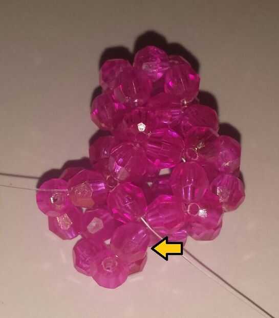 4. Pase el extremo derecho (pintado) en los granos de 2 siguiente