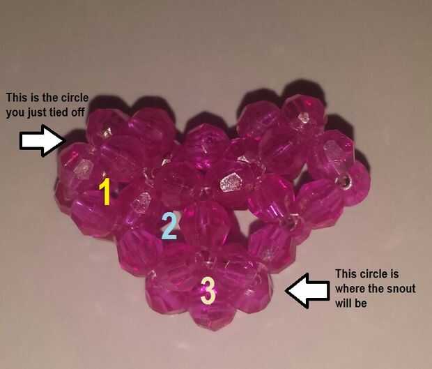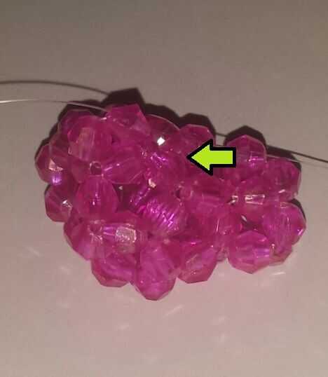 6. Pase el extremo derecho (claro) a través de la cuenta pasada (bicono) en la dirección opuesta