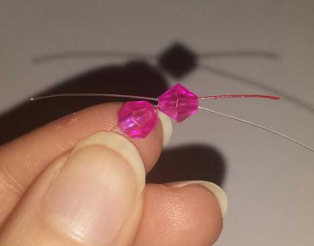 5. poner 2 rosa granos (1redondo y 1 bicono) en el extremo izquierdo (pintado)
