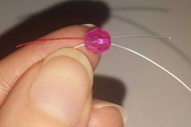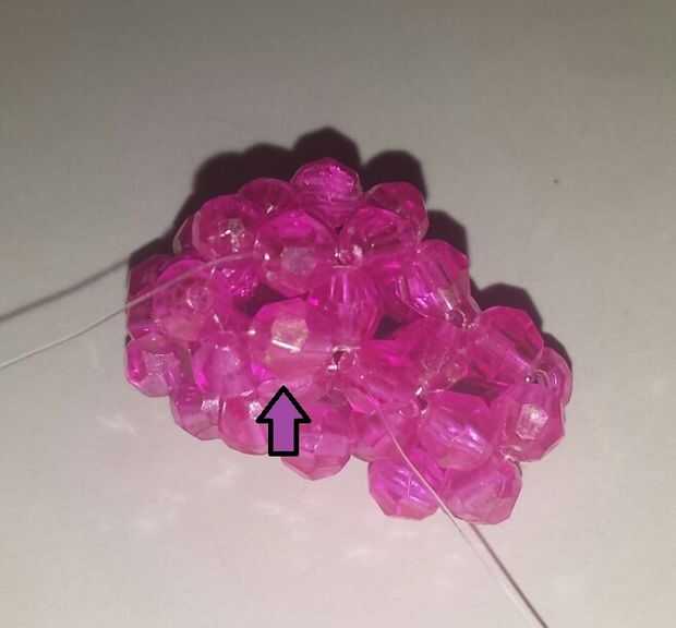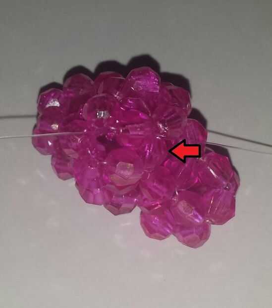 4. Pase el extremo derecho (claro) en los granos de 2 siguiente