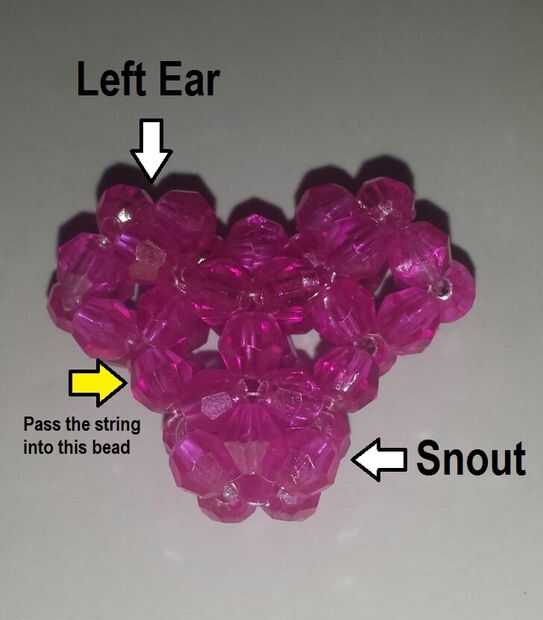 6. Pase el mismo extremo de la cadena (derecha) en el grano de la primera a la derecha de la oreja izquierda