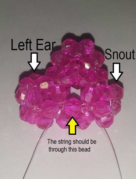 2. pase un extremo de la cadena en thebeadbetween el oído izquierdo y el hocico