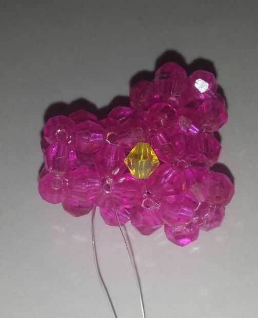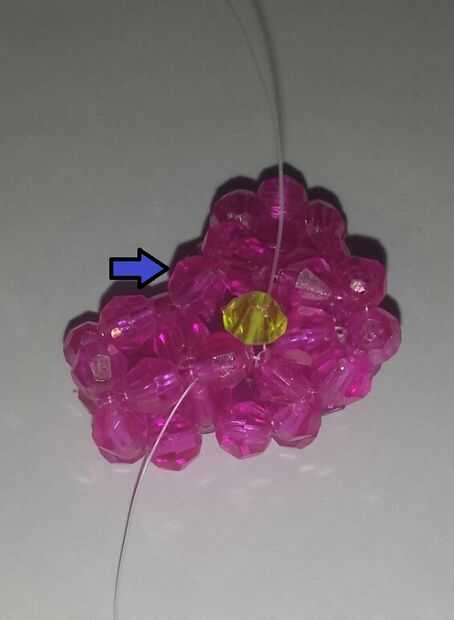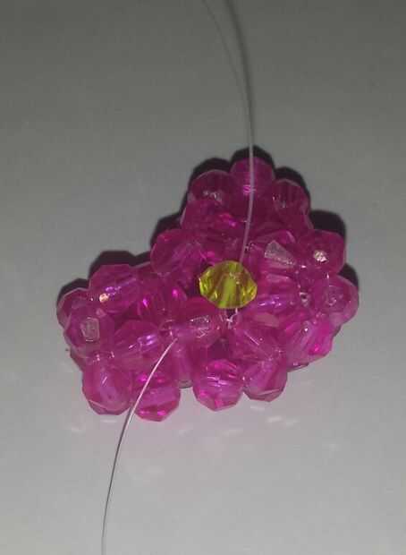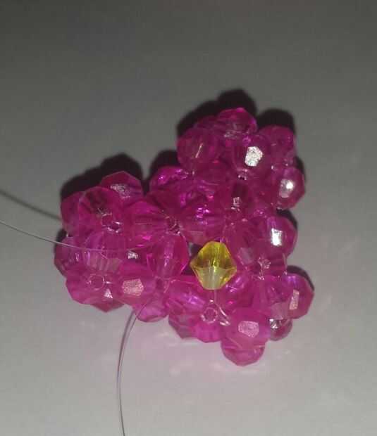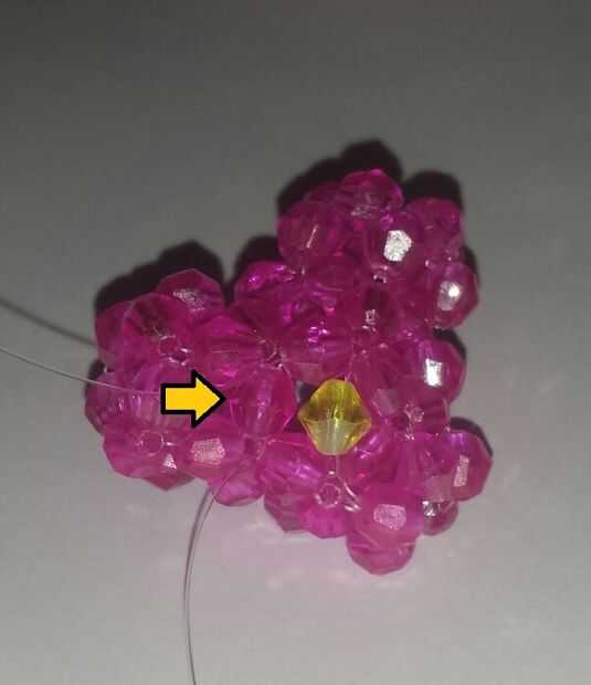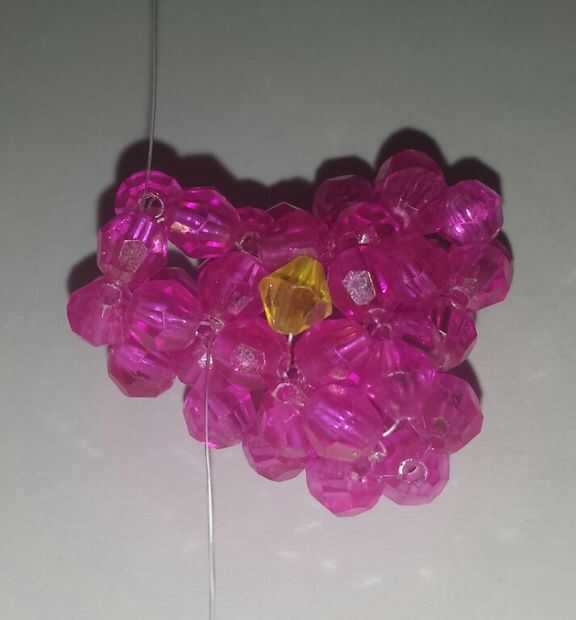 4. poner 1 amarillo grano (bicono) en el extremo derecho de la cadena