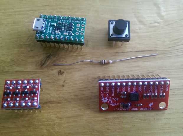 El LSM9DS0 funciona con 3.3V salidas, pero el procesador necesita 5V entradas, así que un convertidor de nivel de lógica de las líneas SCL y SDA se requiere demasiado.
