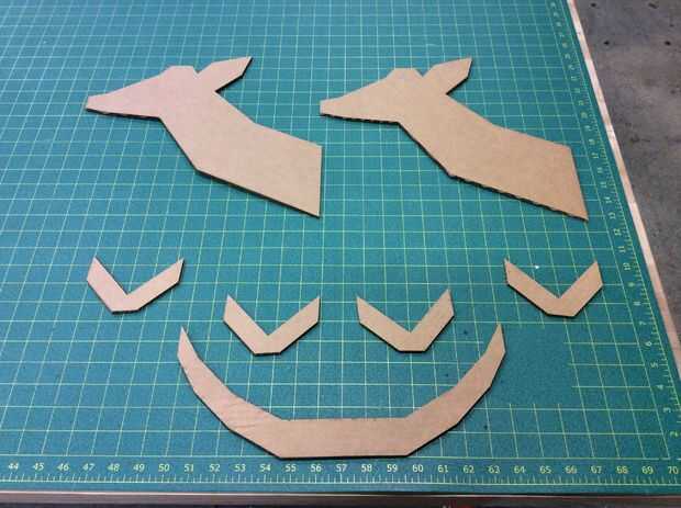 Adjunto están los archivos de CorelDRAW que he creado para cortar con un cortador láser. Si usted es bastante afortunado tener acceso a un cortador del laser puede utilizar estos archivos. Si resultan ser más astuto que el y tiene acceso a CorelDRAW (Inkscape puede ser su mejor alternativa https://inkscape.org/en/download/windows/), puede utilizar los archivos para tener medidas exactas de la cabeza de Reno, las cornamentas de los mini y las cornamentas.