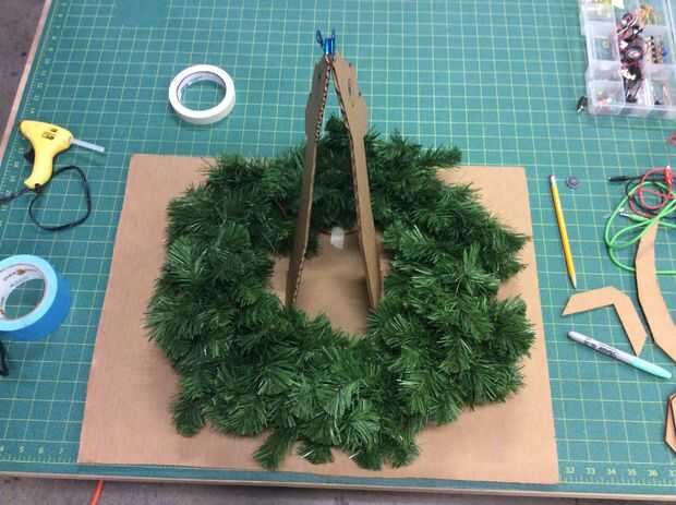 - Cortar un agujero para los cables en la parte inferior del círculo interior de la corona