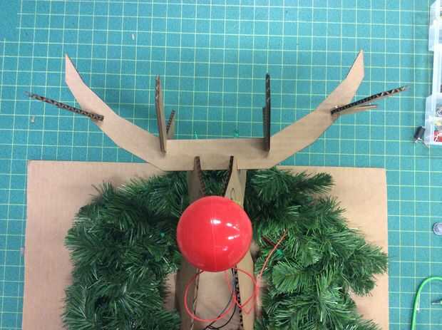 - Colocar las luces en la cabeza de Reno y cuernos *