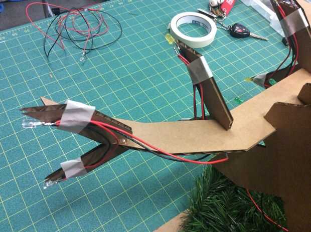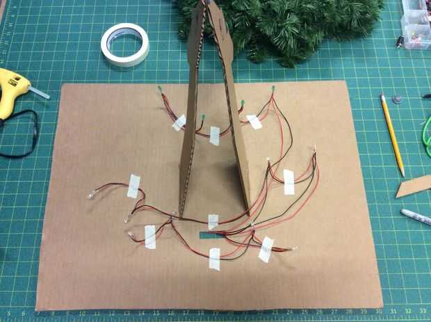 - Tres conjuntos de LEDs se colocará sobre el cartón