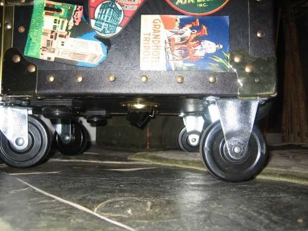 Este tronco vino con un juego bastante débil de ruedas, así que me quité y había añadido ruedas industriales. Las ruedas en la parte trasera están en una posición fija y giro de las ruedas giratorias delanteras.