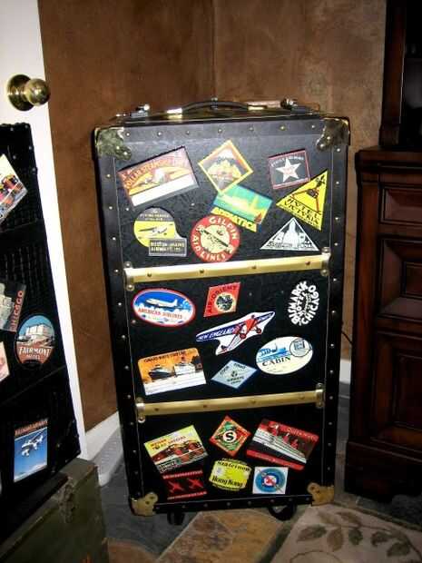 Y por último, usted probablemente ha notado un montón de pegatinas en el tronco. Estas son las duplicaciones de viejas pegatinas de viaje que he encontrado en internet. Les impreso, había laminado con película transparente, atado cinta doble cara moqueta en la parte posterior, cortar y había pegado en. Pensé que algo así le daría el tronco una mirada agradable, interesante.