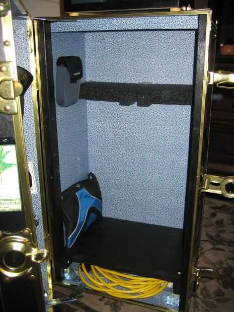 En la 1ª foto he mostrado donde se almacenan todos los componentes. TODO, incluyendo una extensión amarillo grande que a veces necesito cabe dentro del maletero. Se utiliza casi cada pedacito de espacio, incluyendo el espacio proporcionado por la tapa.