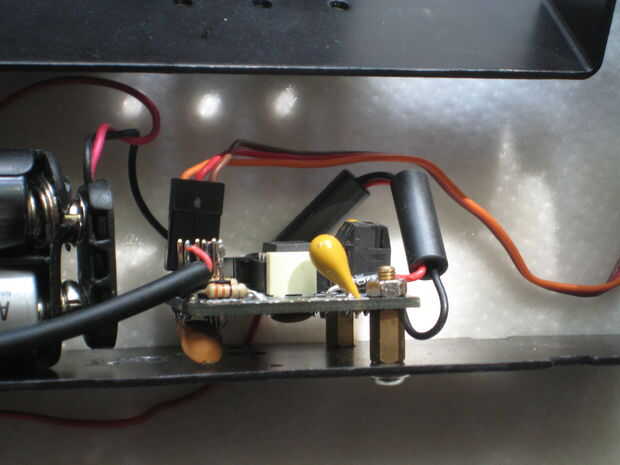 Fije la batería 6V titular comleta con células recargables AA usando clips de corbata como se muestra.