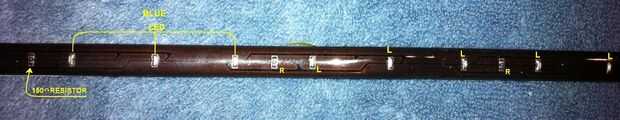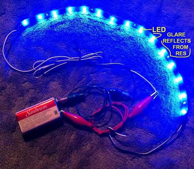 - Una tira de LED azul de 12 voltios 15 de eBay (4 tiras de $6)