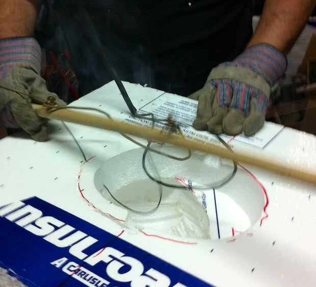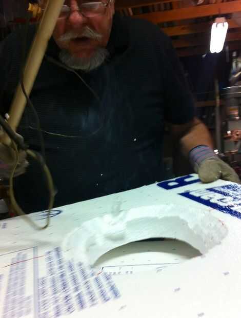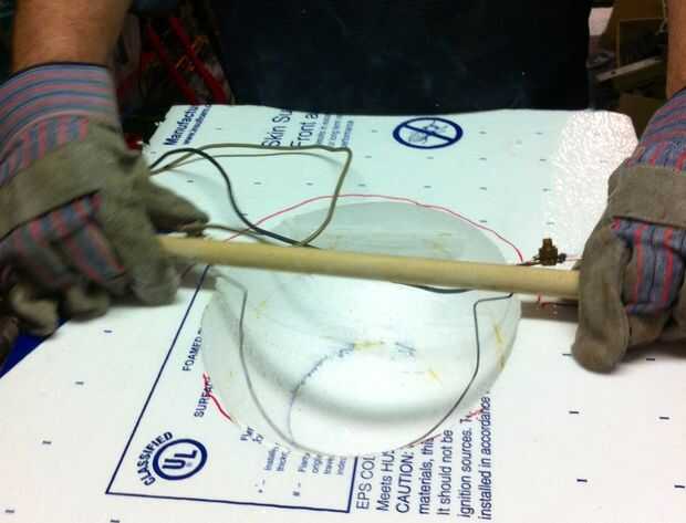 - Cortar y montar el casco en el bloque de espuma de poliestireno de tres capas.