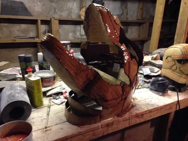Para fortalecer la forma base del esqueleto de la cabeza de T-Rex, aplique varias capas de resina sobre toda la estructura. Sin embargo cuando recuerde que aplicar más capas de resina que se aplica, más grueso es el acabado del producto será. Mat de fibra de vidrio o tela puede agregarse sobre un cartón entre las capas de resina para darle fuerza extrema, aunque esto también agregará mucho más peso a la cabeza de T-Rex. Es el más ligero de la pieza acabada, más fácil será para montar en la pared. Una buena alternativa más barata para el uso de resina de fibra de vidrio es simple papel maché. Este método de refuerzo no sería tan duro y fuerte como la resina aunque sería más ligera.