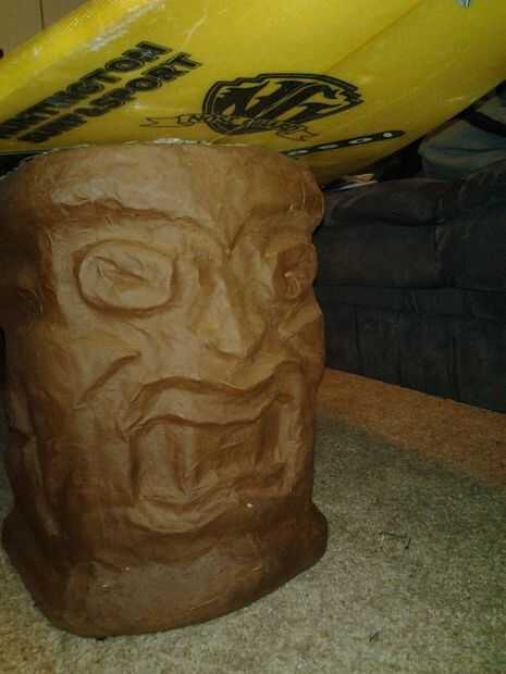Me enfermé de tener bloques de patas en mi mesa de centro así que decidí hacer tiki simples cabezas de papel maché para cubrir para arriba.
