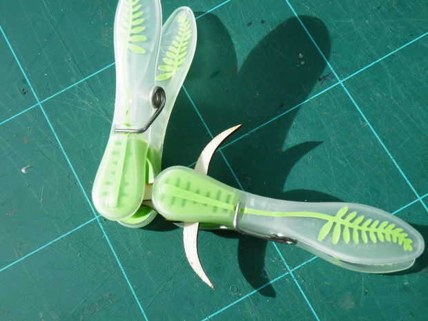 Mientras se está secando el pegamento, la necesidad de cabeza fija. Para un proyecto de este tamaño, pinzas de tender ropa hizo un trabajo admirable.