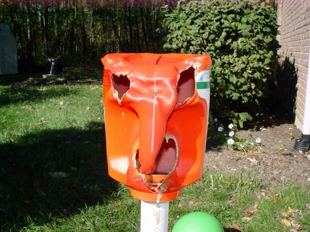 montado en un trozo de tubo de pvc. El tótem cabeza entonces es aerosol pintado de tu color favorito de halloween, (elegí negro). PERO NO ACABA ALLÍ! La cabeza del tótem puede ser engañada más