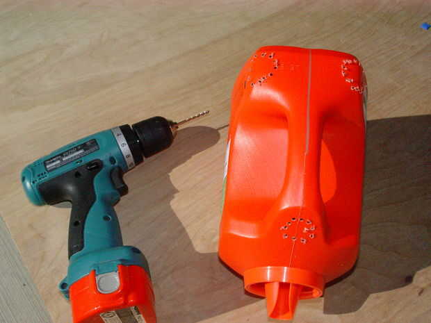 botella de suavizante de telas que tiene un mango lateral (nariz). Las características faciales se agregan primero, luego la botella es