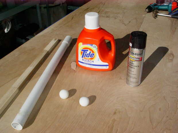 Se necesita elementos en la foto: botella de detergente o suavizante de telas líquido (el tipo con la empuñadura lateral), una longitud de 1 y 1/2 de diámetro tubo de pvc (4-6 pies funcionaría bien), estaca de madera que quepa dentro del pvc