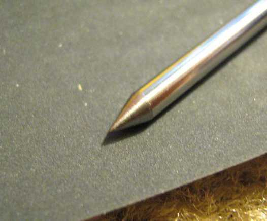 - La punta de la barra a un punto fino con lija áspera y luego suave de la arena.