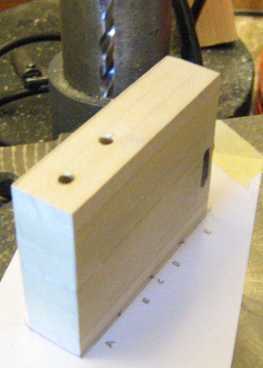 5. Taladre un orificio 'B' que pasa por las dos piezas de la parte superior y 1/4 a través de la pieza de más abajo.