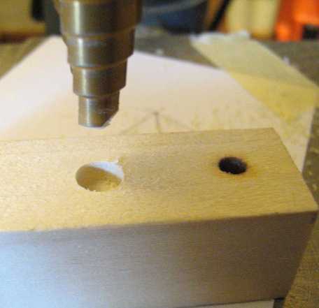2. Usando una broca de paso grande, agrande el orificio de 1/4 forma de la pieza superior para dar cabida a un mucho poco más grande.