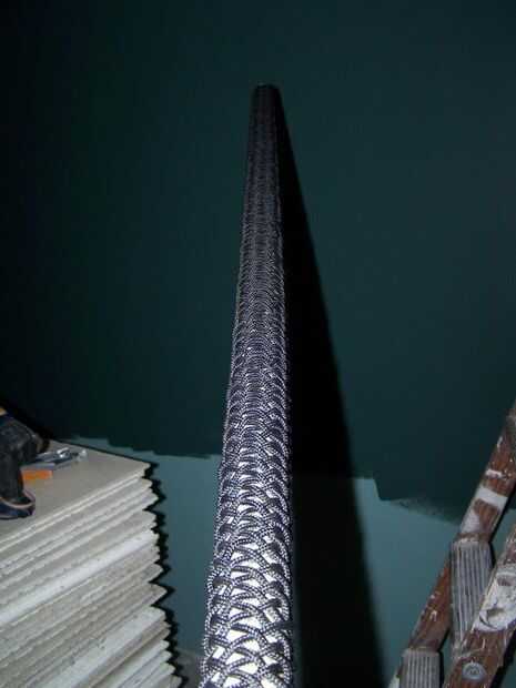 Después de ejecutar el primer curso de cable en todo el patrón entero. Me debería haber dejado, y luego se deslizó la malla tejida de y quitado el papel. La sección central entera de mi patrón de papel está atrapada bajo mi armadura. Usted no puede verlo, pero sé que está ahí. Y ahora así.