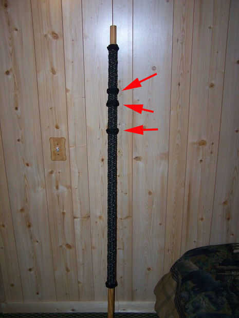 tenía una bokken de roble blanco llano colocación alrededor y pensó que podría utilizar algún estilo. También tuve un buen poco de paracord de sobra, así que decidí jugar un poco con la cabeza de Turco. Había duplicado un nudo dos Ensenada, luego hab