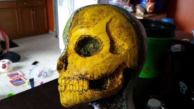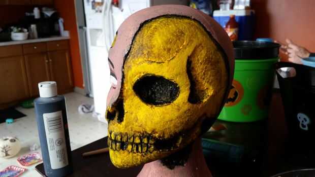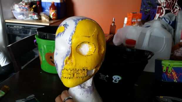 Pintar el color base sobre el cráneo. He pintado amarillo como base. Habría sido más realista ir más beige.