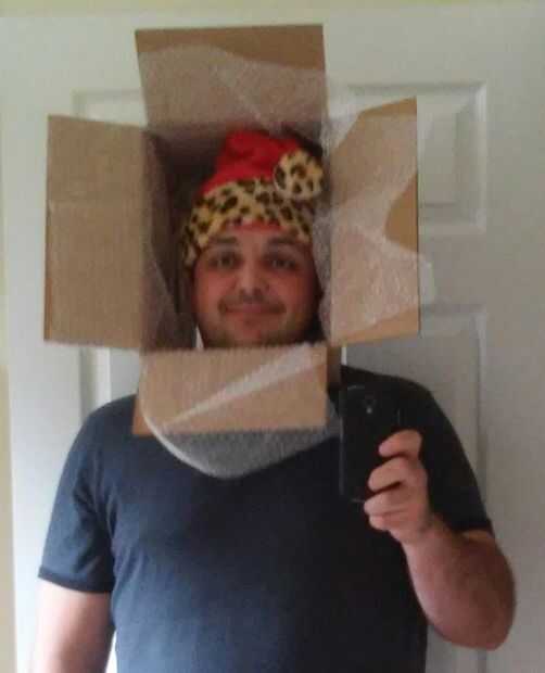 Poner la caja en la cabeza, seguro la parte de atrás. Poner en el piso o la cama, se trata de su fondo. Llevar una camiseta con el color del fondo, esto ayudará a la ilusión. Se pueden colocar otras cajas por su caja, para ayudar a la ilusión. Tomar fotos con tu cámara o que alguien tome de usted.