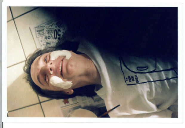 Mano de tu pareja un bolígrafo y un lápiz y dos sorbetes. Tomar una cuchara y frote un poco en su rostro. Si parece es llorar... pone más. Quiere ponerlo capas delgadas, hasta cubrir toda la cara con la primera capa, todas excepto las fosas nasales y los agujeros de oído por supuesto.