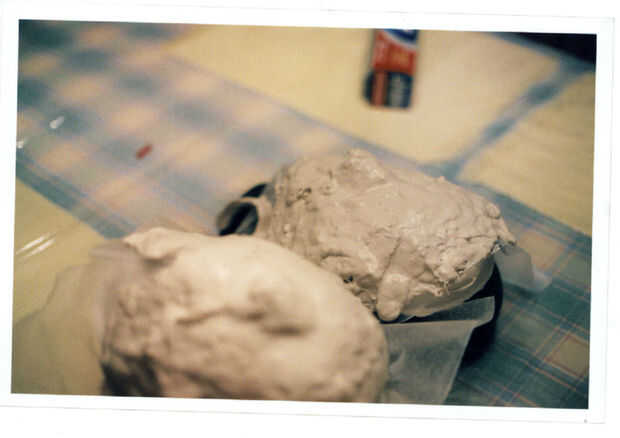 Ahora que tienes tu molde de la cara, se puede convertir con yeso de París. Pero quiero una cabeza encogida, así emitidos unos pocos y deje que se seque el moulage hacia fuera un poco, lo crunch, retorcerlo y deja secar y luego lanzarlo. Básicamente es como masilla tonta y puede controlar la forma se seca para que pueda obtener todo tipo de caras reliquias.