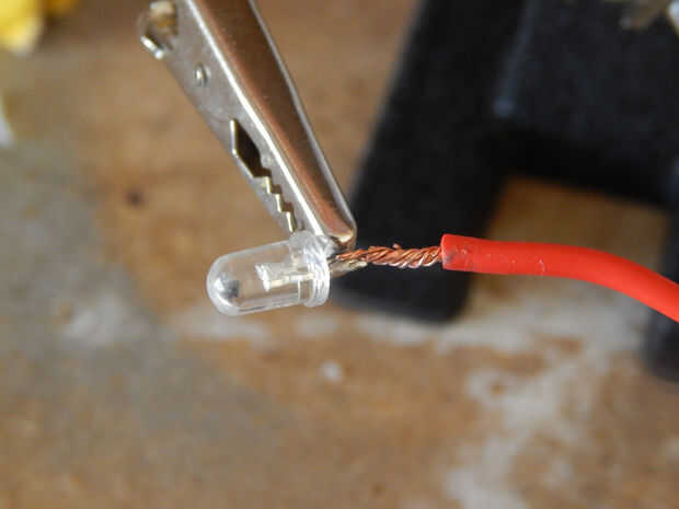 Ahora estamos en el paso (c) del LED 1. En este paso usted recibirá otra pieza de alambre que va soldado a la negativa terminal de 1 LED (como en cuadro 4).