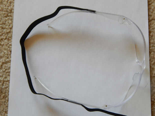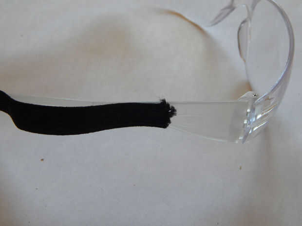 Ahora es el momento para añadir el elástico en las gafas de seguridad.