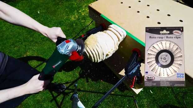 Usé un disco Roto raspador en mi amoladora angular para suavizar las capas y asaltos sobre la forma de la cabeza. Esto hizo un trabajo rápido de conseguir la forma áspera definida.