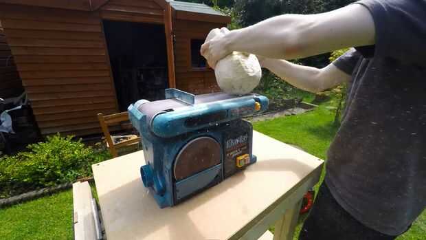 Luego usé mi lijadora de banda más liso y definir la forma. Yo ya hasta con escofina de mano, archivos y papel de lija hasta que estaba contento con la forma.