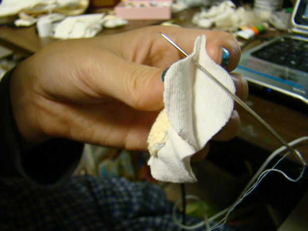1) utilizar una puntada corriente a coser juntos las claras de huevo.