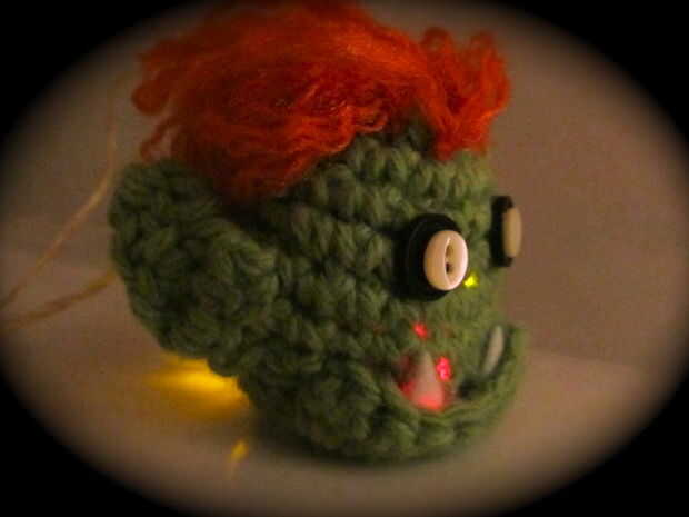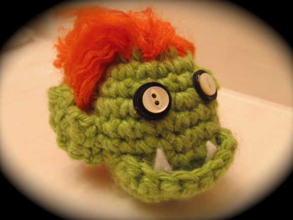 6. un rectángulo para la boca (Ch 10, sc en segundo ch gancho & a, ch 1 & turn) de ganchillo 3 veces