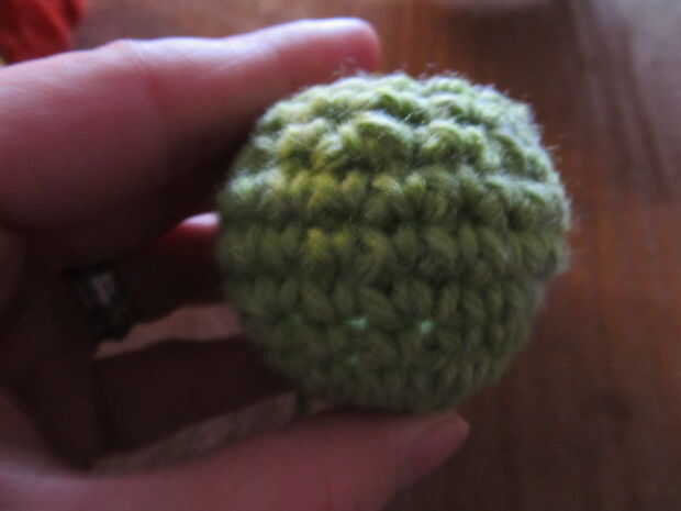 4. acabado de relleno y R12: Dic alrededor a ganchillo la bola cerrada