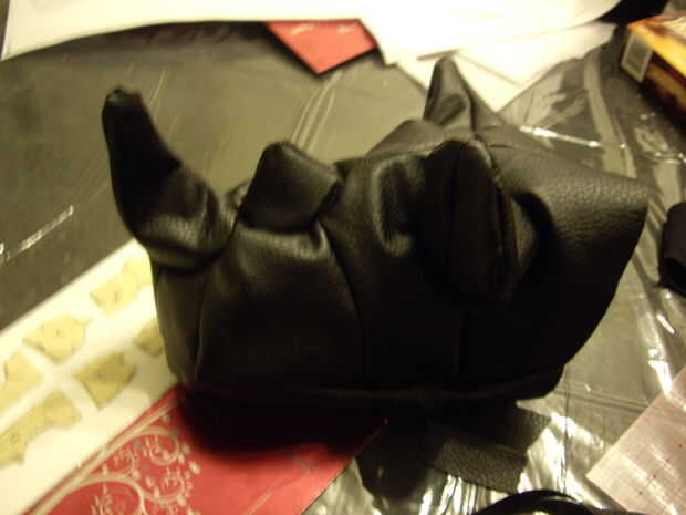 Comencé a coser los lados juntos, y luego la sección debajo de la barbilla. He cosido los cuernos y las orejas por separado y fijarse a mano porque con todas las capas de la tela de mi gallina de máquina de coser dijo "diablos no" y no coser a través de ellos. Hizo un rápido punto de, luego recorta cualquier esquina que se iba a bombeo una vez resultó.