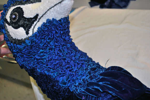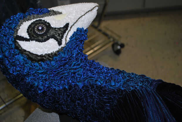 Después de comprobar el pavo real, encontré algunos puntos que necesitan costura para cubrir los bordes de terciopelo crudo adicional. Deslizarlos cosido abajo y tomó otra mirada en el pájaro.