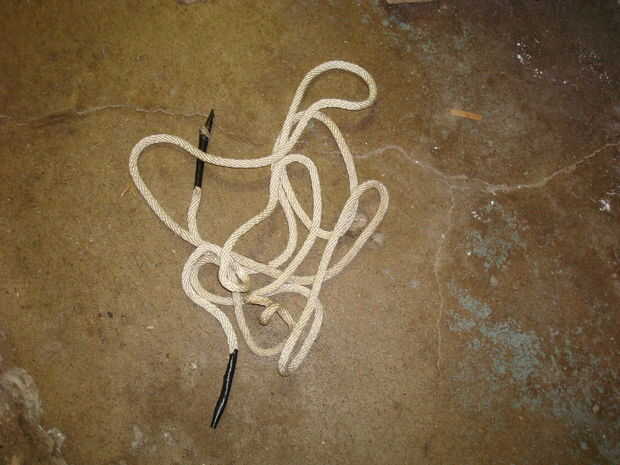 Después de que la cabeza está firmemente en la bomba, es necesario tomar la cuerda del amortiguador auxiliar y cuerda. Conecte el cable de bungee en la parte posterior de su cabeza, o a la manija. Use la cuerda para enganchar en el otro lado de la cuerda del amortiguador auxiliar. Cuando la bomba se extiende todo el camino, al final de la cuerda debe ser ligeramente más pequeño que la longitud. Esta manera, cada vez que aparece la cabeza, la cuerda del amortiguador auxiliar empieza a estirar un poco para que la cabeza sea jalada hacia atrás abajo de cuando se apaga el aire comprimido. Conecte el otro lado de la cuerda a la base con un gancho de tornillo o s.