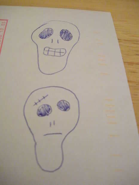 Probar algunos rostros sobre el papel. No estoy bendecido con cualquier tipo de dibujo talento así que esto era una necesidad para mí. Yo también busqué en Google 'zombie de dibujos animados caras' para obtener algunas ideas.