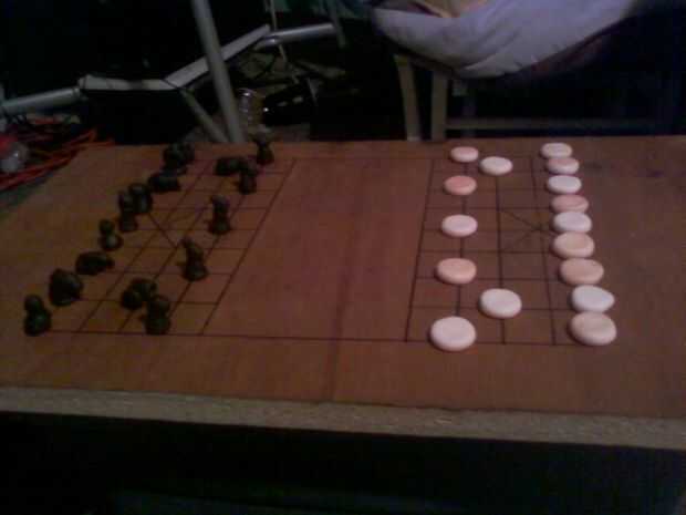 Un ajedrez chino establece, básicamente una versión China del ajedrez, las tablas sólo dibujadas con rotulador por el momento. Todas las piezas fueron hechas de sculpey a mano.