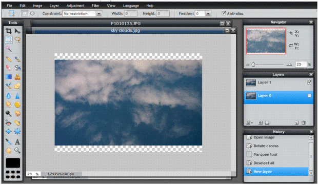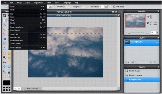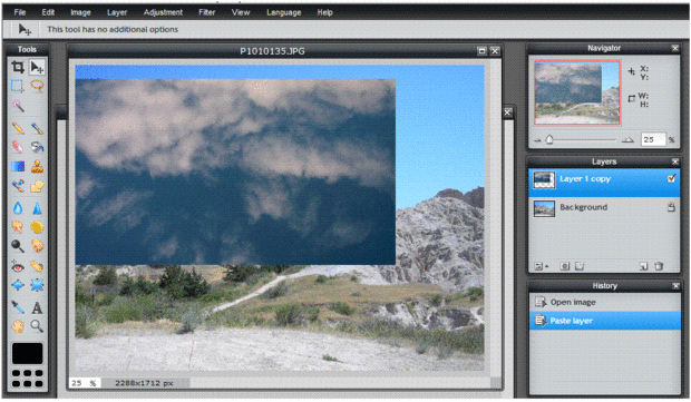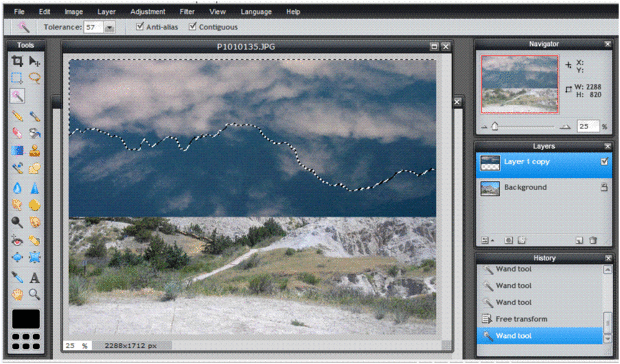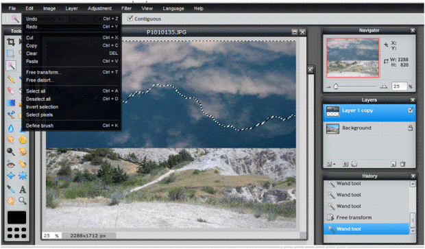 8. vaya a Editar > Copiar y edición > pegar Esto creará las nubes como una capa en la misma forma que el cielo del fondo original.