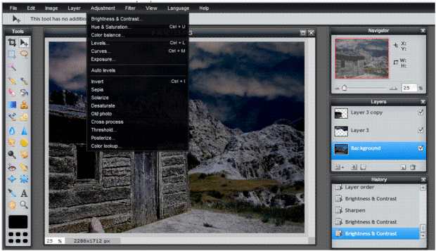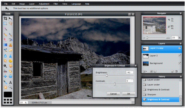 Todos los elementos en la foto deben ser más oscuro. En primer lugar que desea que tenga la capa que desea editar resaltado en el cuadro capa... Luego ir a ajustes > brillo y contraste. Aparecerá el cuadro de brillo y contraste y sólo tienes que arrastrar la flecha alrededor para jugar con estas opciones. Haga clic en OK para guardar y pasar a la siguiente capa a hacer lo mismo!