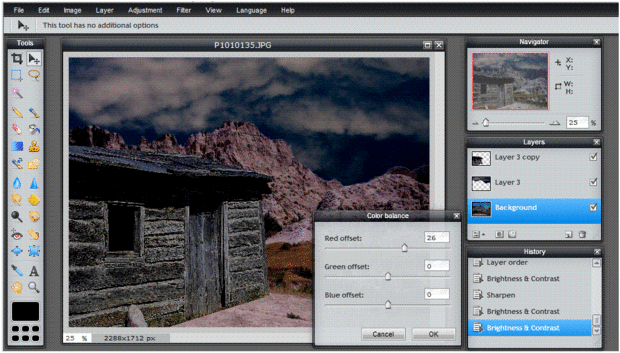 También quería añadir algunos rojo al fondo de tierras baldías. Así que hice clic en ajuste > equilibrio de Color. Apareció el cuadro de color equilibrado y hasta el rojo en la foto y haga clic en Aceptar.