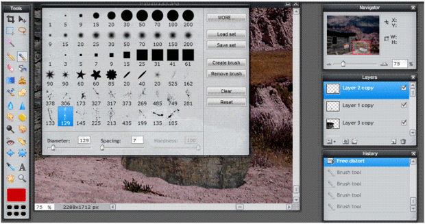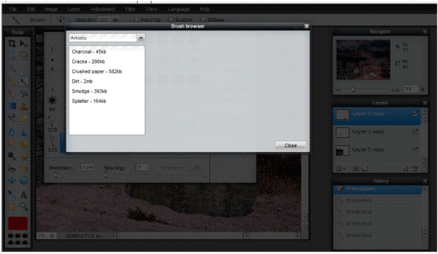 7. ahora verá los cepillos de la salpicadura en el área de estilo cepillo habitual. Puede ajustar el diámetro que es justo por debajo de los cepillos de la salpicadura.